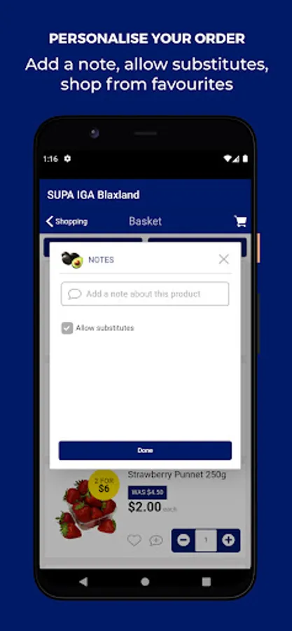 Once your order has been placed and confirmed ready, you can go to our Supamart IGA app and let us know that you have arrived to make things quick and easy when you get in store.