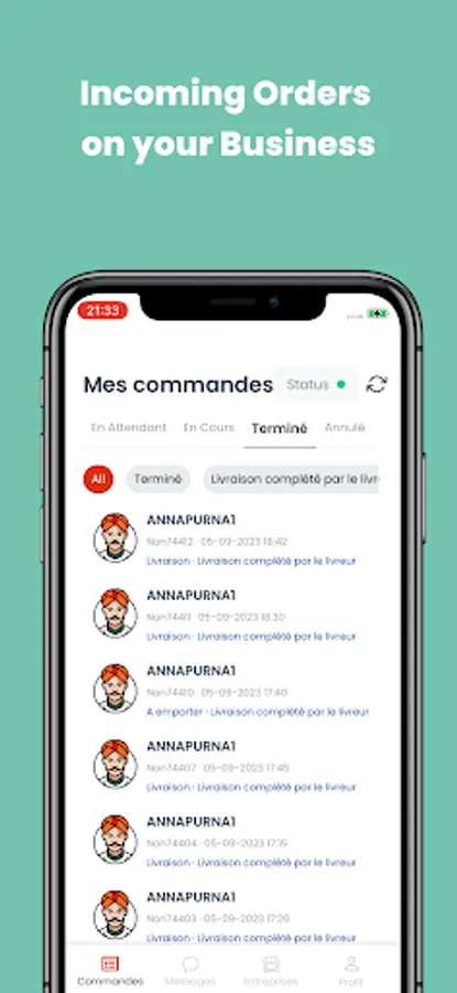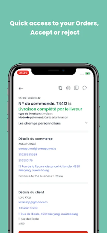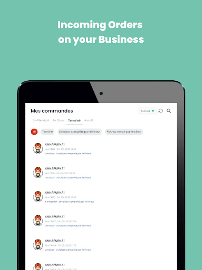 You can then inform your customer and your company that the order is pending or in progress or that it has been successfully fulfilled by the delivery person or that the customer has managed to collect from the establishment.
