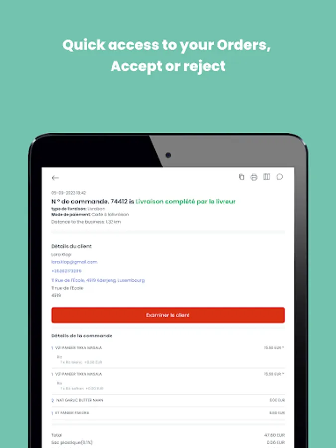When you accept the order, the company and the customer, you will receive an email confirming the details of the order, the date and time of delivery or the date and time to take out, the method of payment if the customer has already paid online or on delivery or at the company itself, your company contact details and the customer's contact details.