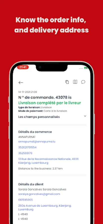 When you accept the order, the company and the customer will receive an email confirming the order details, delivery date and time, payment method, your company contact details, and customer contact information.