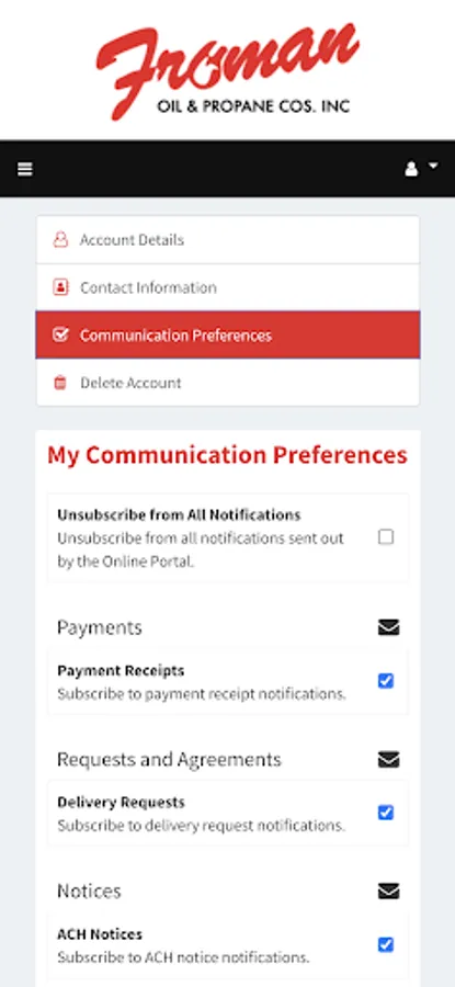 With the Froman Oil & Propane app, verify your account details, request a delivery, check your account history, update communication preferences, and more!