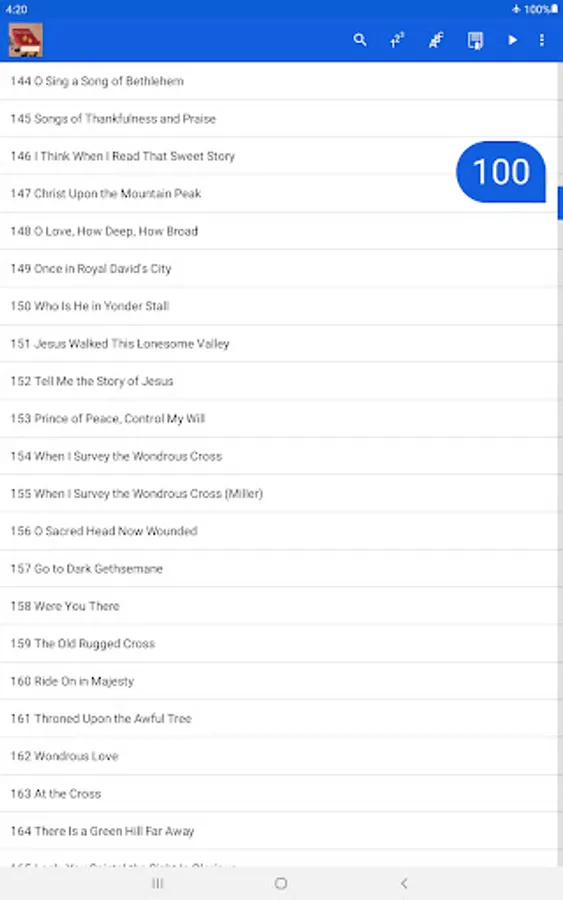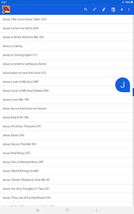 • Type in a 3-digit hymnal number to immediately jump to song