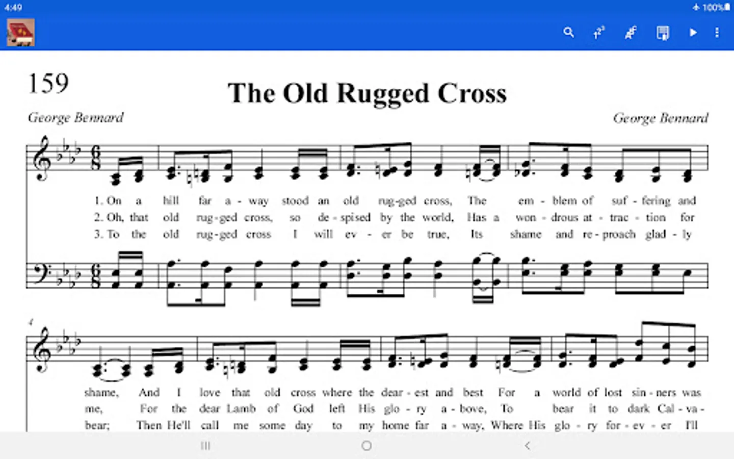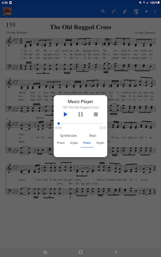 How wonderful and convenient to have your hymnal on your tablet or smartphone. This is a full featured complete SDA eHymnal with professionally typeset (not scanned) music scores and lyrics that are ultra sharp and clear. Contains all of the 695 hymns from the Seventh-day Adventist Hymnal® plus many more from the "old" hymnal and other choruses. 4-part harmony music scores for all of the hymns. Also has all of the responsive readings. All the hymns have complete piano accompaniment. Use the accompaniment for congregational singing, or to meditate on during your personal devotions. No internet connection is needed to use this hymnal after installation.