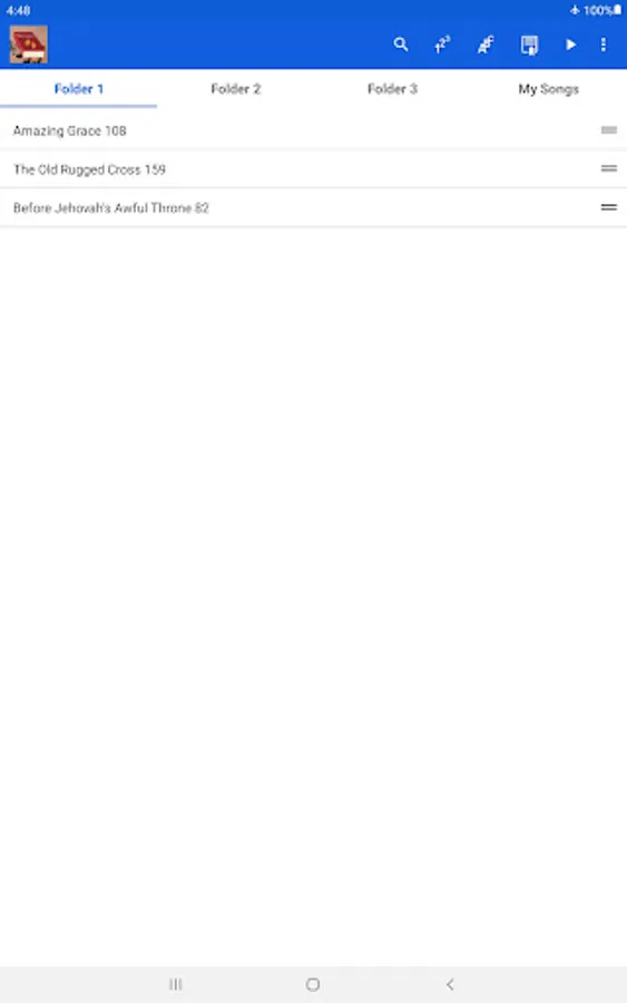 • Three Bookmark folders for organizing songs for service