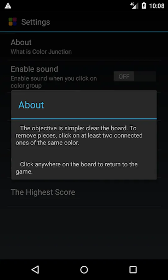 The objective is simple: clear the board. To remove pieces, click on at least two connected ones of the same color.
