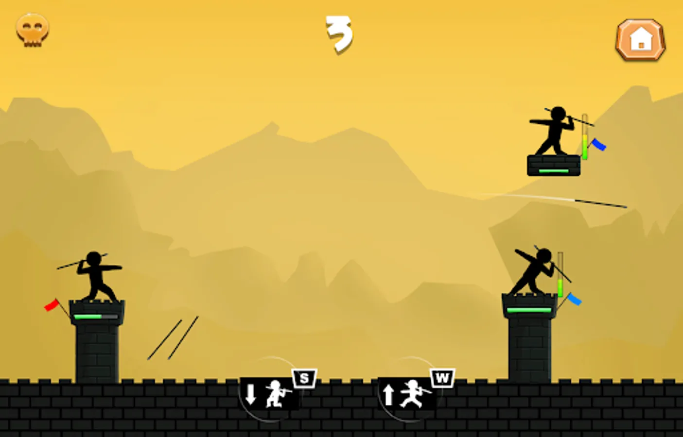 In this epic game you should beat all shadow bowmasters stickman by throwing javelins.