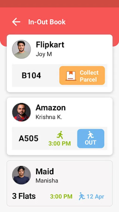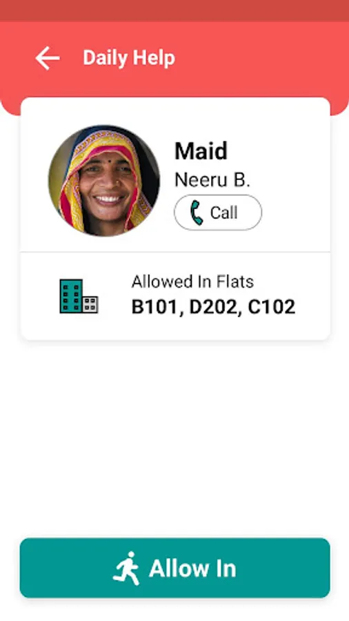 Create digital profiles for daily help and share their unique 6-digit passcode with them. The passcode is entered in the guard app at the entrance and exit of daily help. The resident is notified when the daily help enters and exits the society.