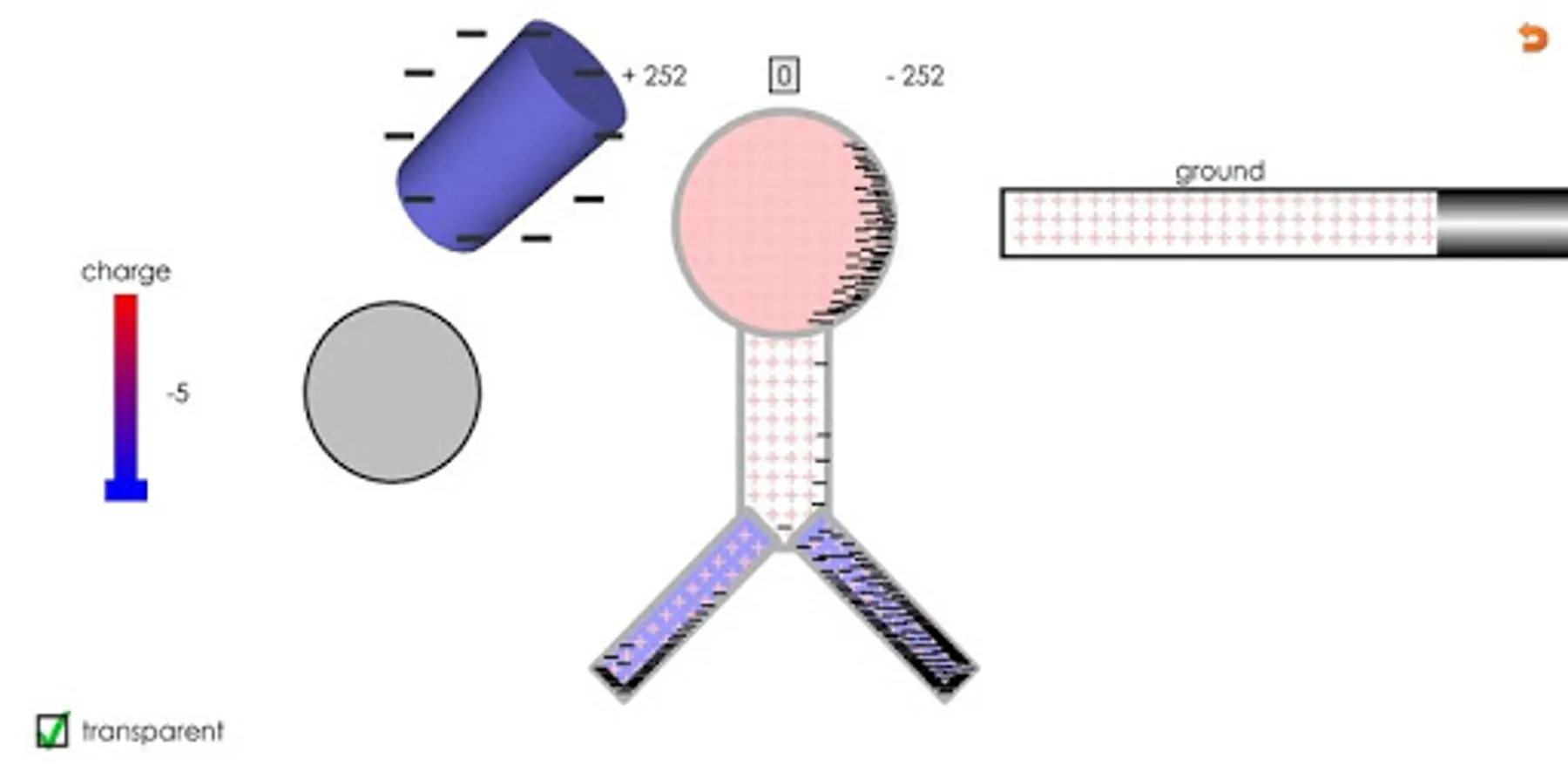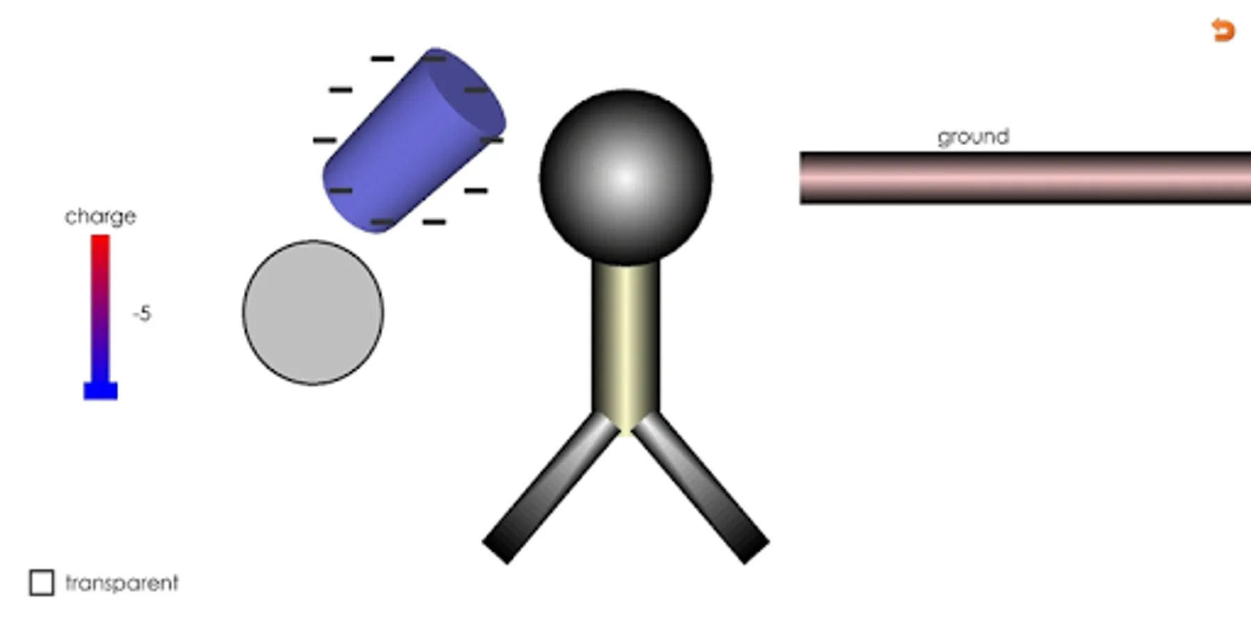 This app simulates a metal leaf electroscope. With it, you can demonstrate: induced charge separation, charging by conduction, charging by induction and grounding.