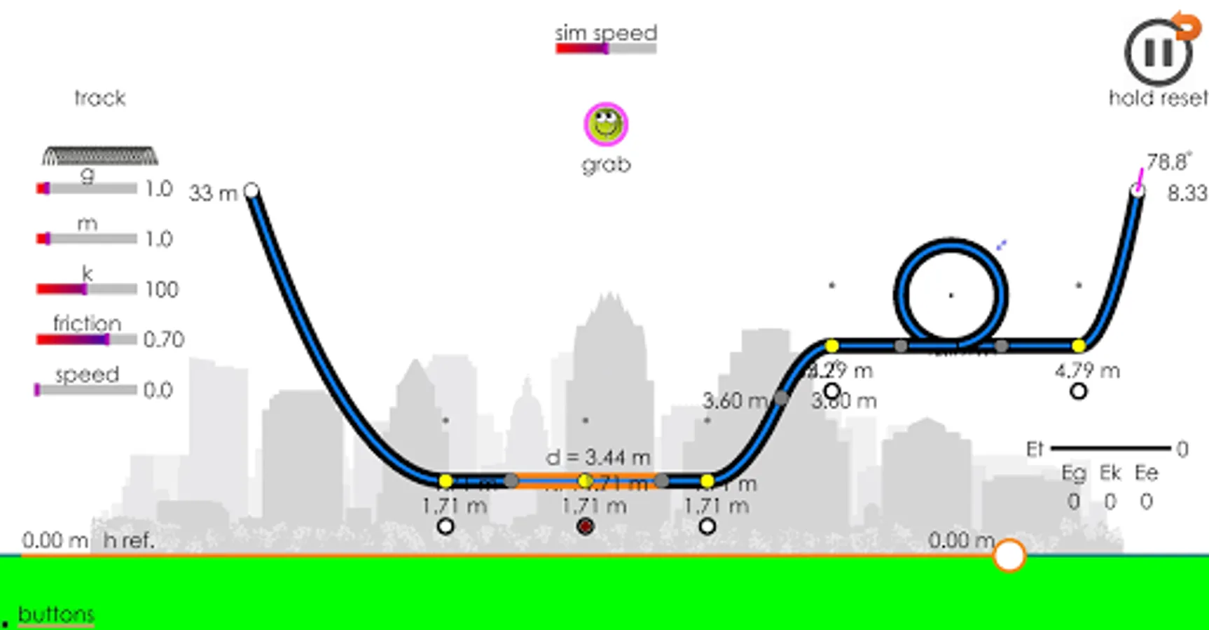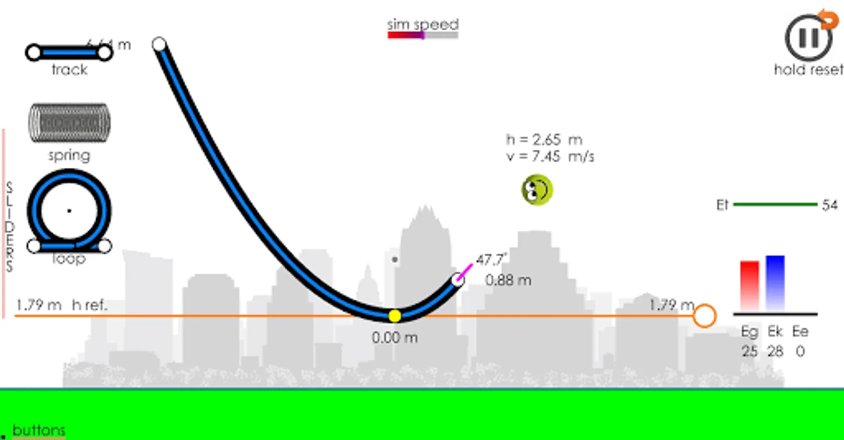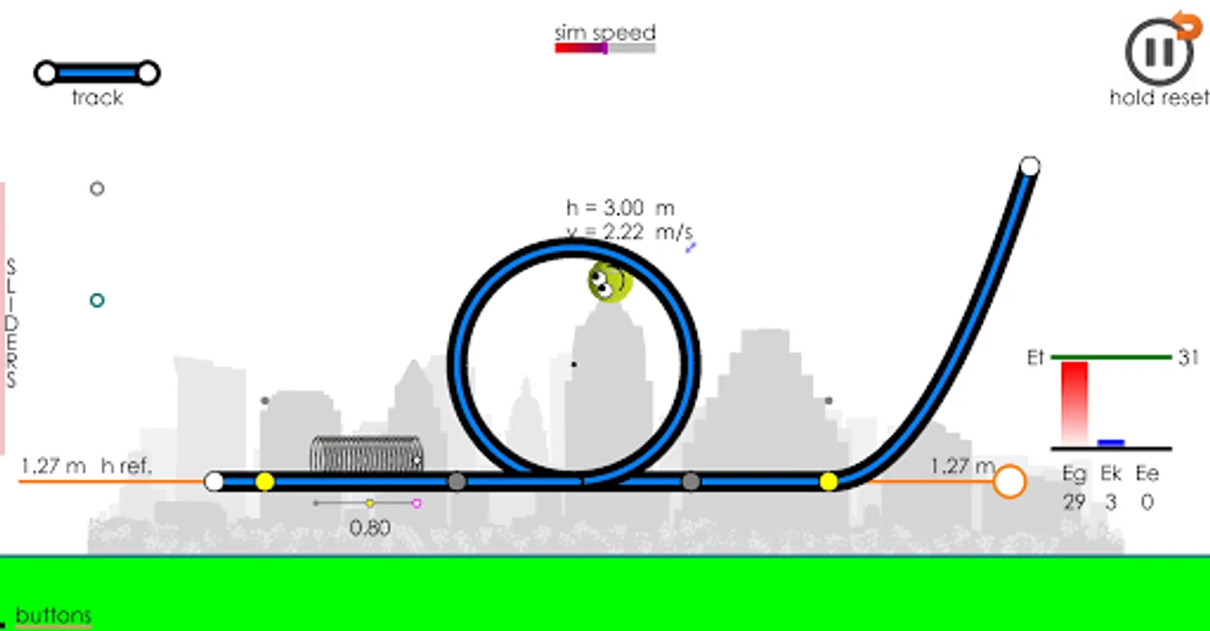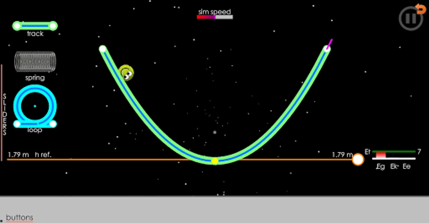 This simulation demonstrates conservation of energy while letting the user create and connect tracks of different shapes as well as loops and springs. Work done by friction and projectile motion can also be analyzed.