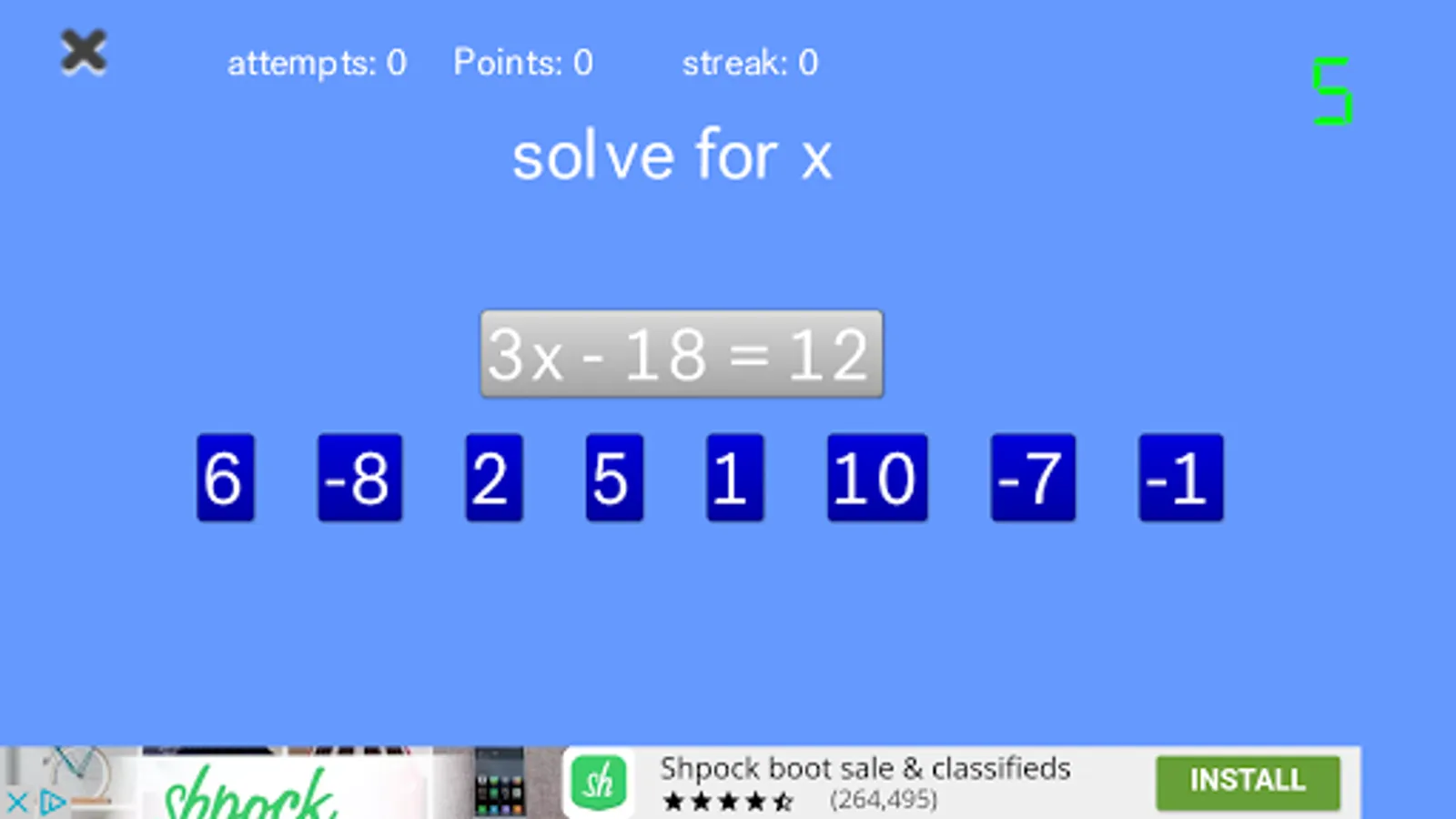 Solve simple equations, simultaneous equations and quadratic equations in Equation Dragger. View your stats and submit them to online leaderboards!!!