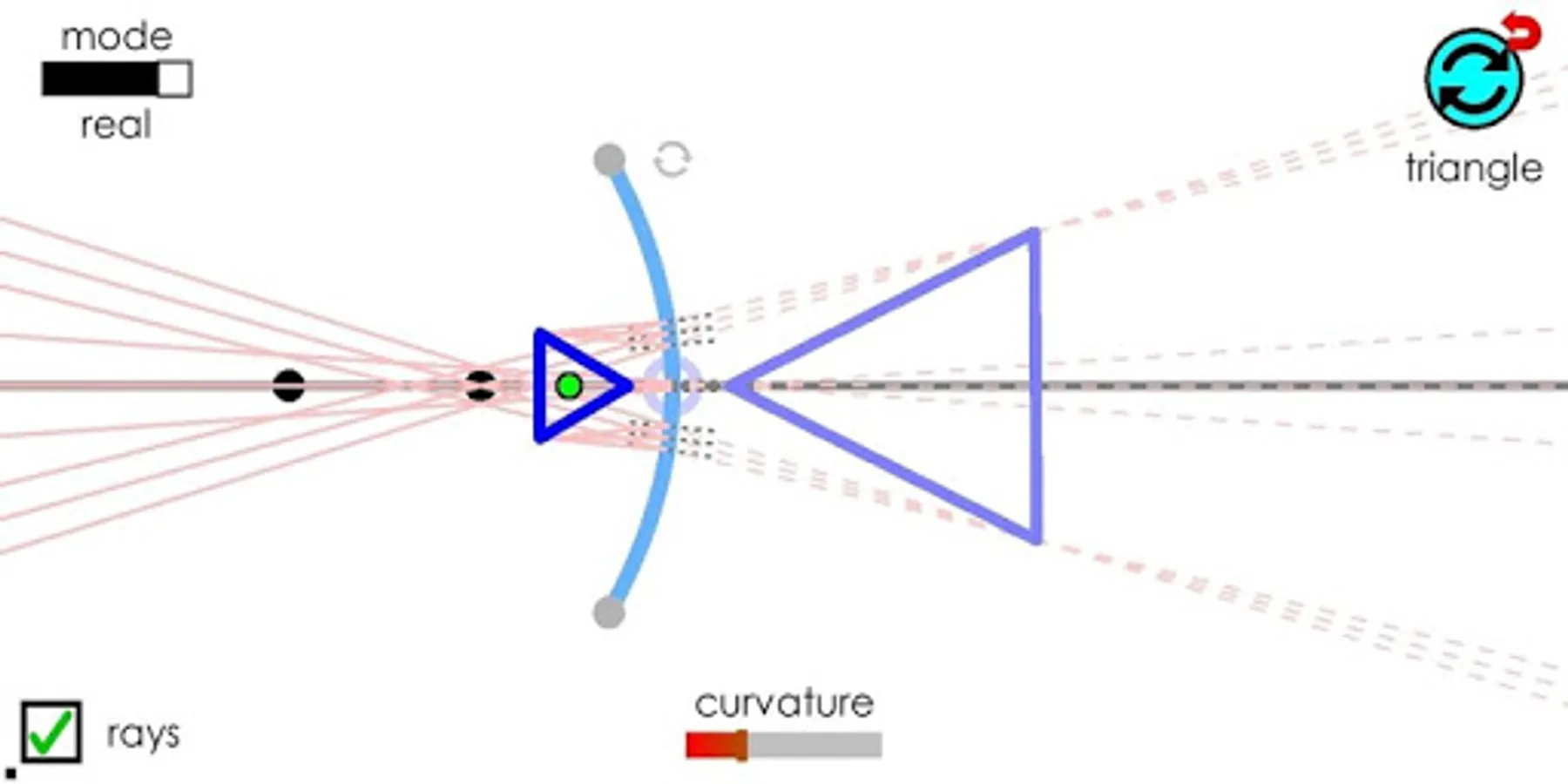 - use the button in the top right to switch objects between ray box, bulb, and triangle