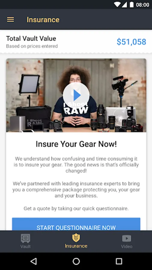 We at MyGearVault understand the importance of protecting your gear. That’s why we’re working with licensed professionals with access to top-rated insurance companies to find a solution that fits your needs. Right now inside MyGearVault you can take a short questionnaire to receive an insurance quote. And in about one business day, you can have full comprehensive coverage from one of our licensed insurance partners.