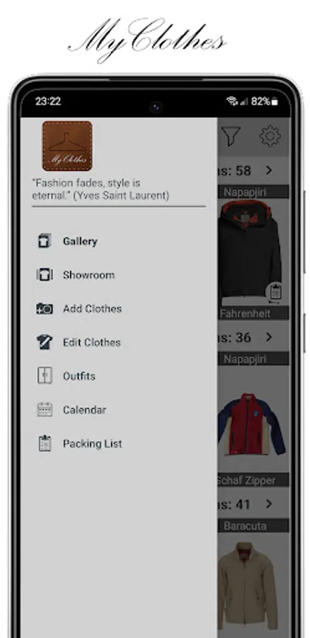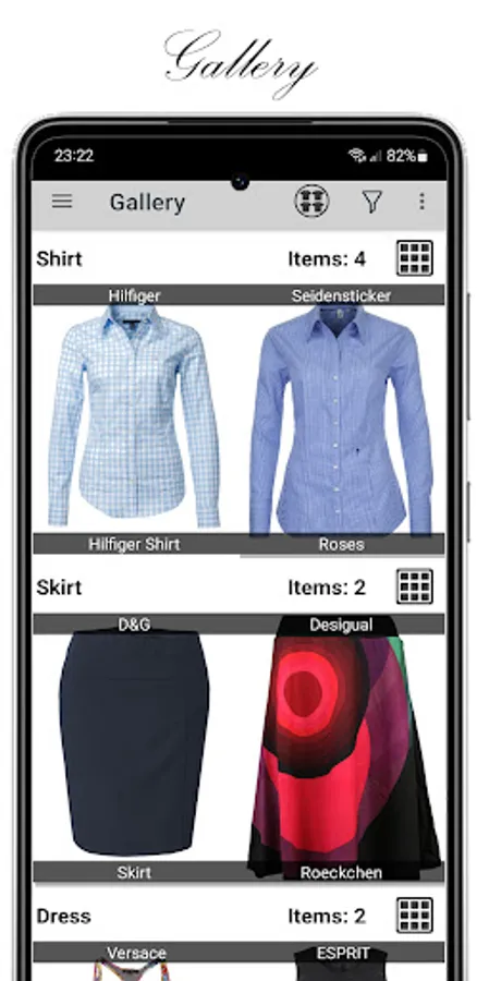 • Swipe trough all your clothes with a showroom view and a gallery view !