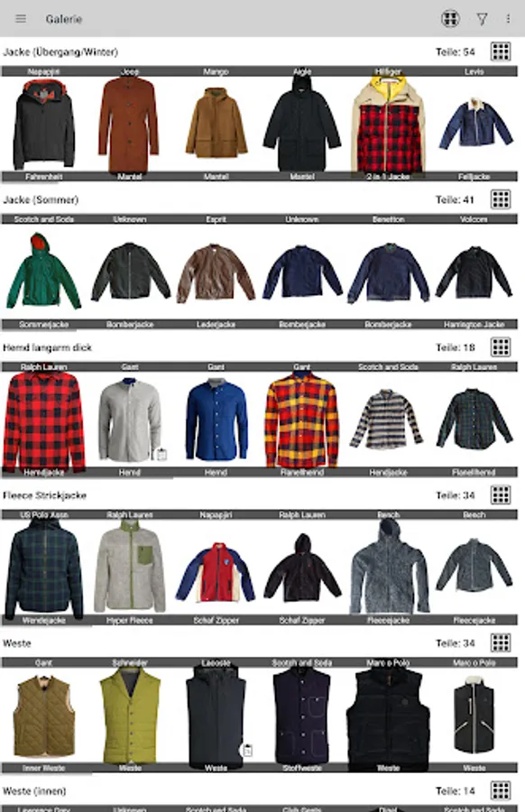 • You can now filters your clothes by nearly all entries. For example: Filter your clothes by a color or brand.