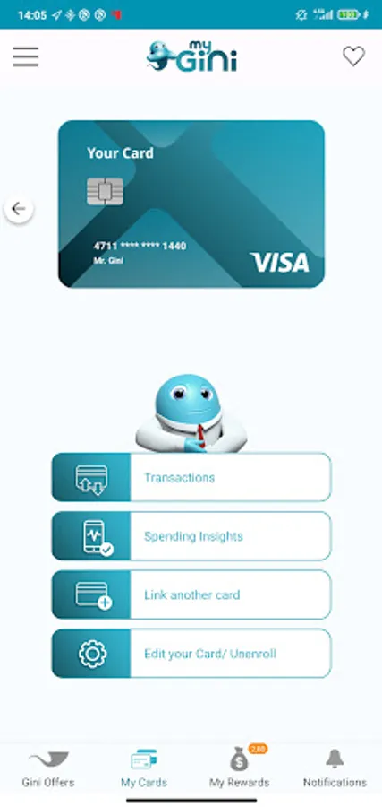 - You can use your card with ApplePay, Google Pay, or shop at an e-commerce website or at a tap and go contactless POS terminal. As long as your card is linked to myGini and you make a transaction at a participating merchant with that linked card, you will be eligible for your cash-back reward.