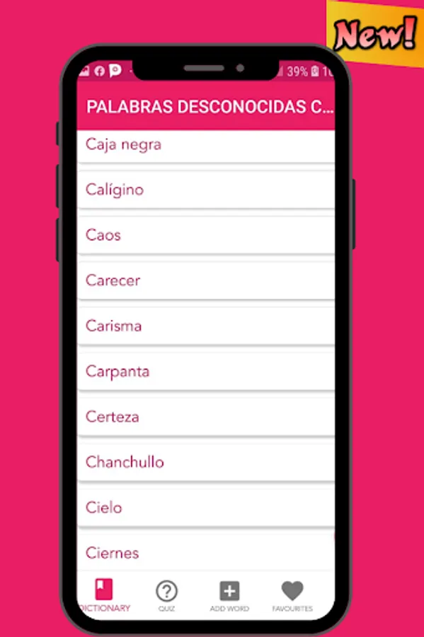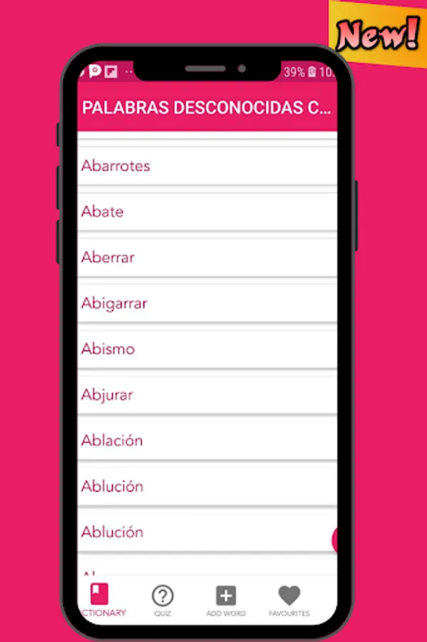 A very easy to use Glossary of Unknown Words app in Spanish and also includes unknown terms from A to Z.