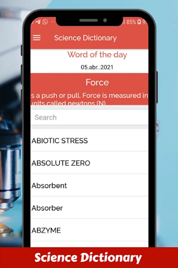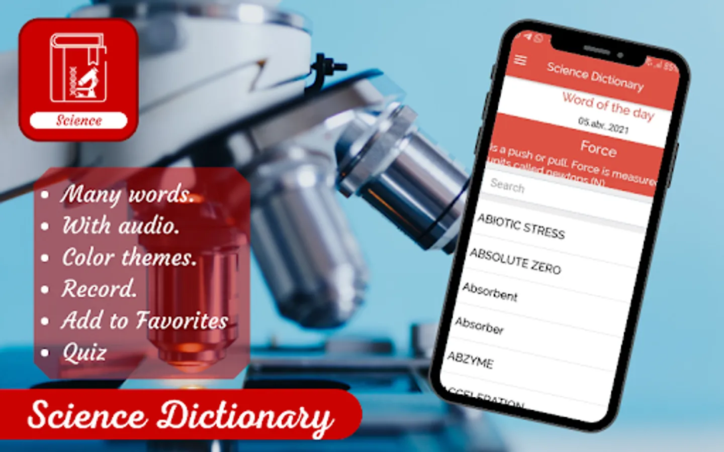 Science Dictionary Free application with common and uncommon words, terms and phrases. Used by teachers, students, professors, university students, etc.