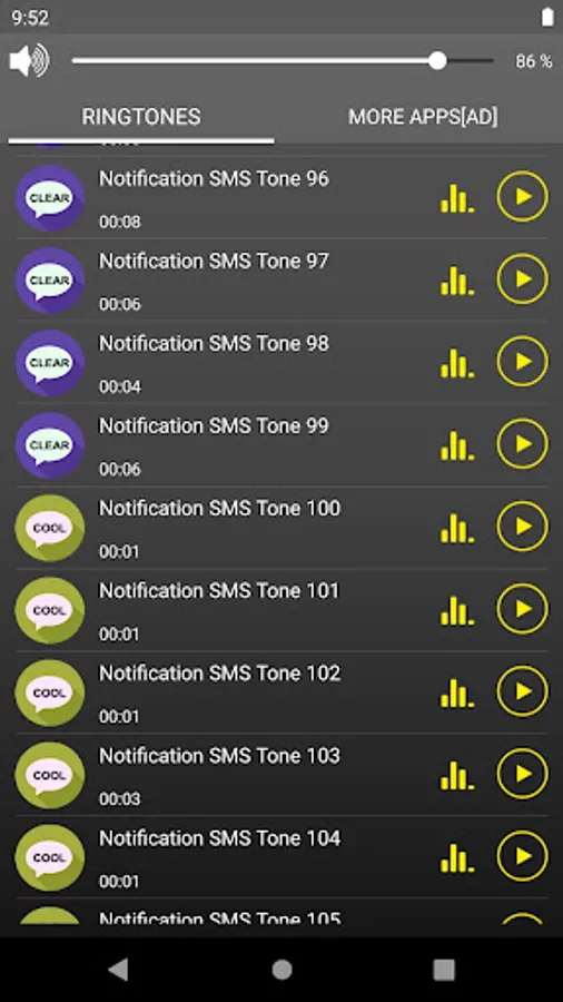 Open this cool Notification & SMS Tones personalized application, you can press the " play " button to listen to the MP3 music!