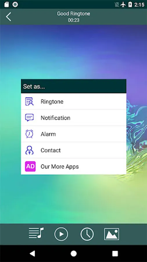 If you like one of the MP3 music you can set it as your default phone ringtone, alarm clock ringtone or notification message tone.