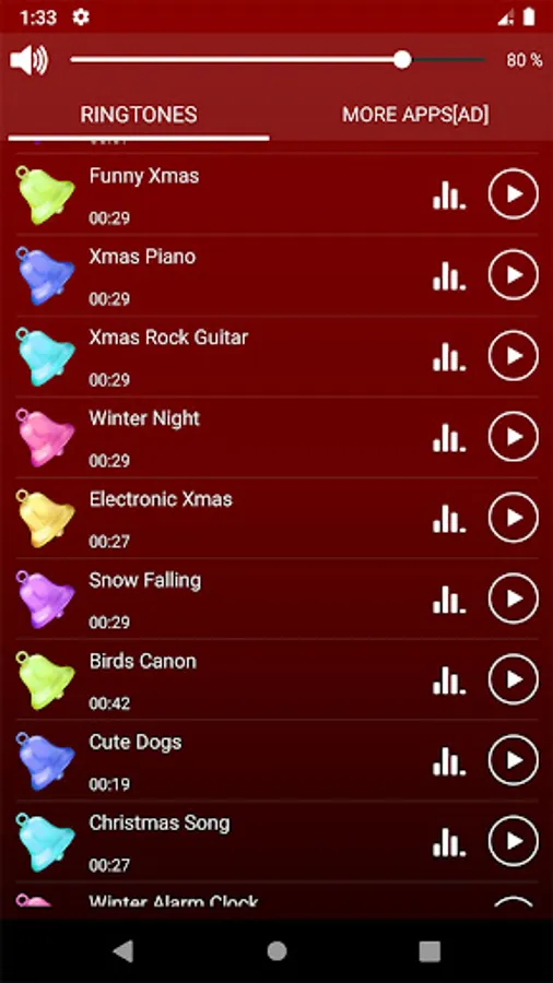 Xmas ringtones such as Jingle bells, Christmas song and so on!
