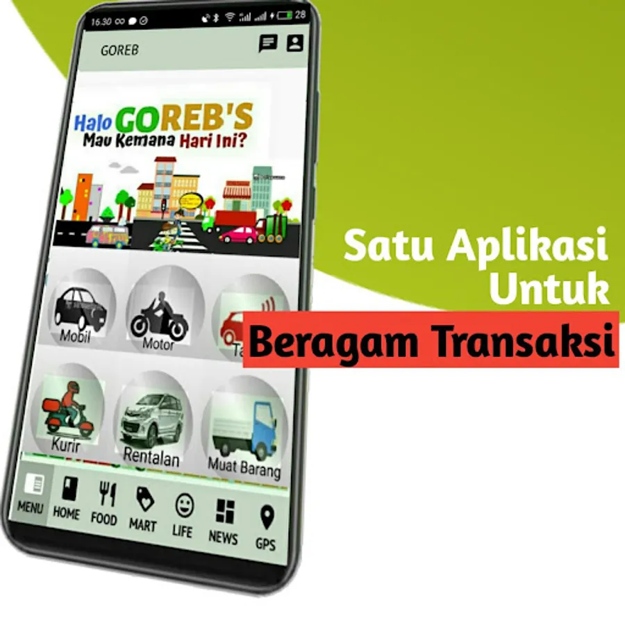 - GOREB - Transportation Online Booking Motorcycle taxi, Courier, etc. even though the work of local children, but dare to compete with similar applications and of course you will get a variety of fun experiences there with various additional features that are not in the others.