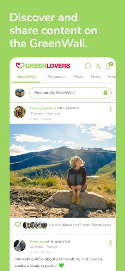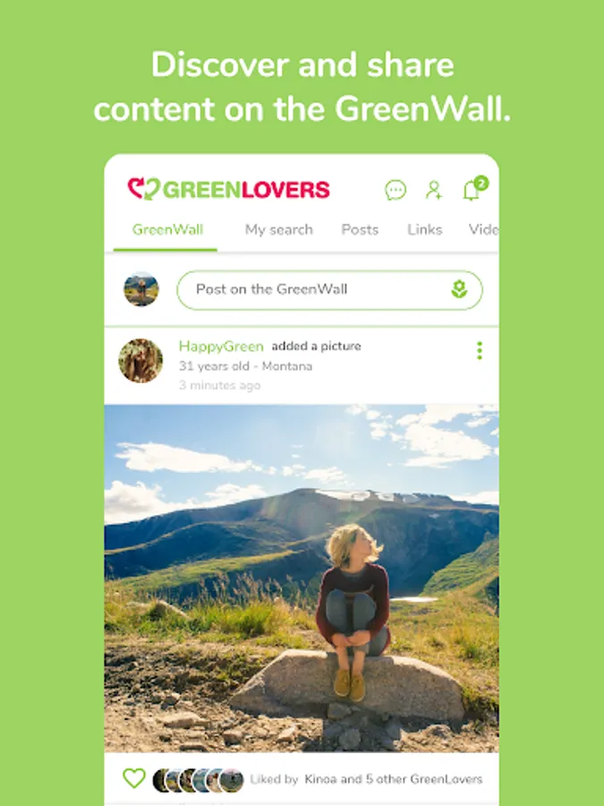 Share and discover Green content on the GreenWall. You can filter the GreenWall to see users’ activity on GreenLovers: new photos, shared links, videos, events. You can choose to see all of the GreenMen and GreenWomen posts or filter the results according to your search preferences.