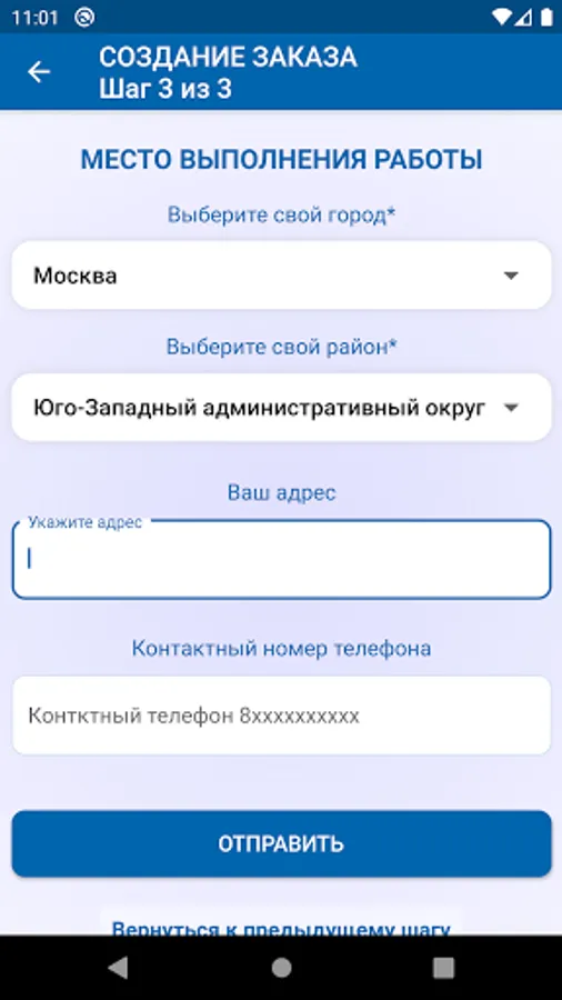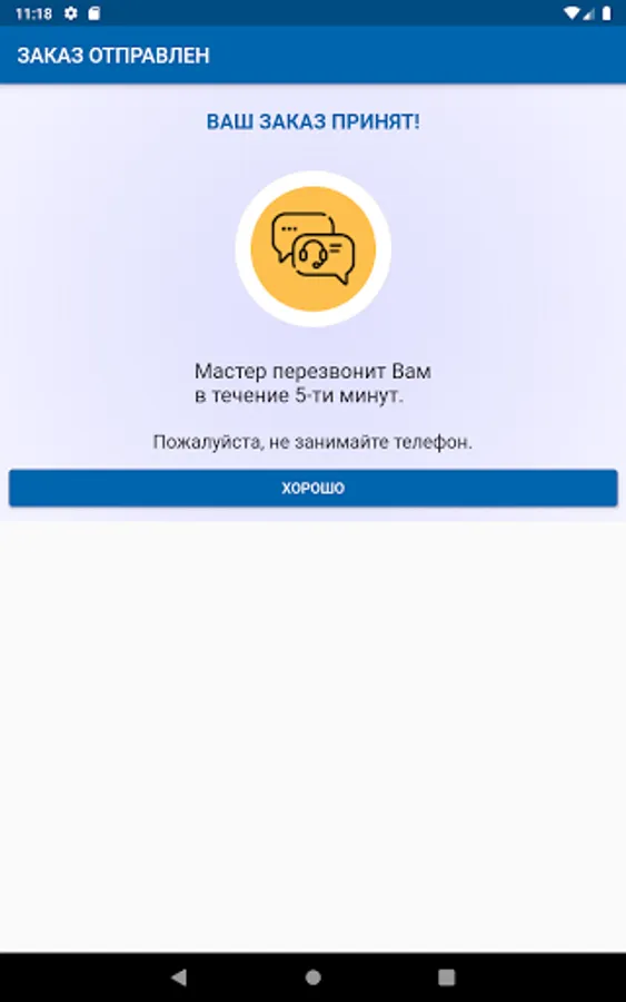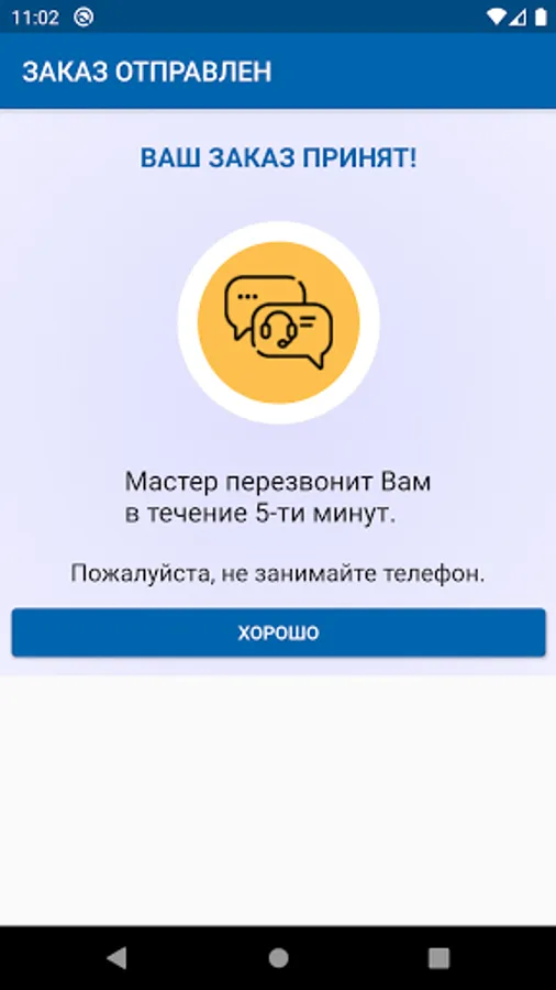 Within 5 minutes, the selected master will contact you by phone. We will select several candidates who live as close as possible to you. You can also track your orders using your phone number in the application.