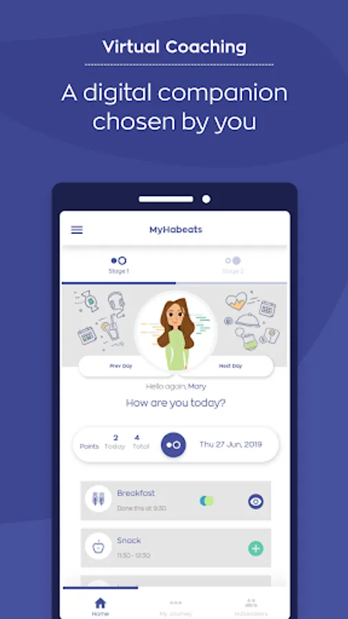 By using the power of behavior tracking, virtual coaching, peer support and reward, MyHabeats helps patients build healthier eating habits and make lifestyle changes for a fresh start in their lives.