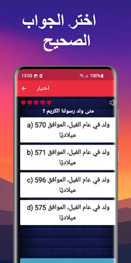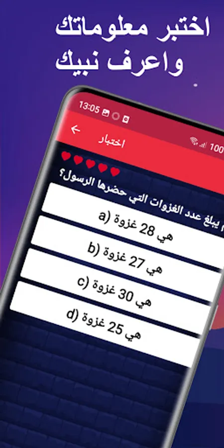 This application helps you learn the biography of the Prophet Muhammad, may God bless him and grant him peace, in a very interesting and useful way. It includes more than three hundred questions divided into twenty levels. Each question is presented with four answer possibilities, and each stage represents a basic station in his life, may God bless him and grant him peace, that is worth stopping at to draw lessons and lessons.