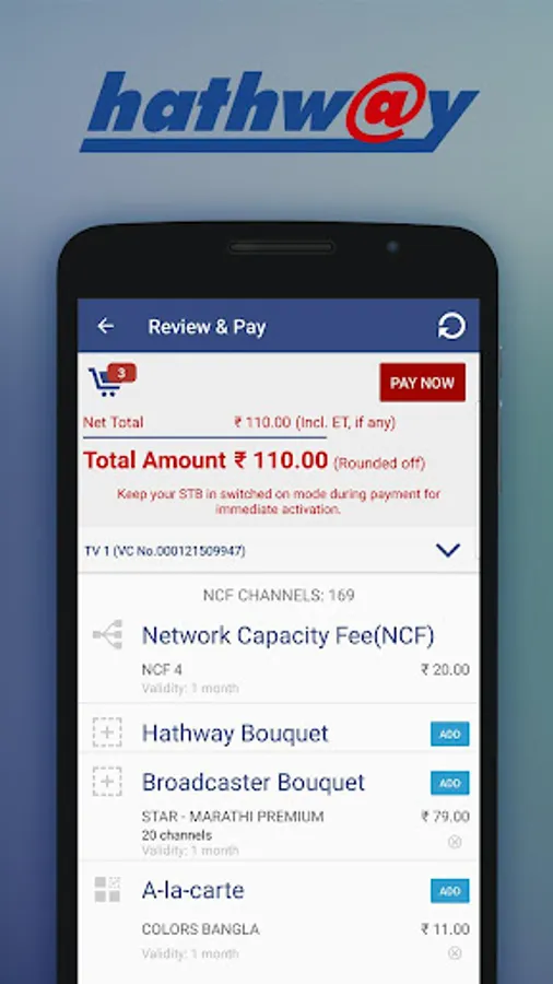 1. View your Subscription details - Free to Air(FTA) Pack, Hathway Recommended Bouquet, Broadcaster Bouquet & A-la-carte channels