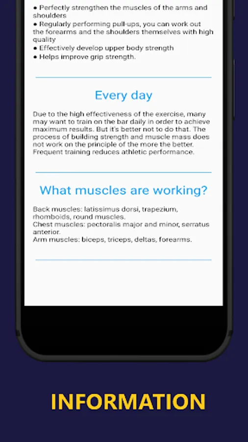 The pull-up is a functional exercise that engages different muscle groups in the upper body. First of all - the latissimus dorsi muscle, it runs from the middle of the back to the armpits and shoulder blades. Its function is to direct the shoulder to the body and stretch the arms back and rotate them inward. The trapezius muscles move the shoulder blades and provide support to the arms. The infraspinatus muscle takes part in the extension of the shoulder. There is also a muscle that straightens the spine. Depending on the pull-up technique, the triceps, deltoid muscle of the shoulder, teres major, brachioradialis, biceps and pectoralis major muscle are included in the work.
