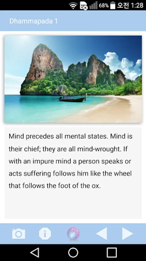 According to the Theravada Buddhist tradition, each verse in the Dhammapada was originally spoken by the Buddha in response to a particular episode. Accounts of these, along with exegesis of the verses, are preserved in the classic commentary to the work, compiled by the great scholiast Bhadantacariya Buddhaghosa in the fifth century C.E. on the basis or material going back to very ancient times. The contents of the verses, however, transcend the limited and particular circumstances of their origin, reaching out through the ages to various types of people in all the diverse situations of life. For the simple and unsophisticated the Dhammapada is a sympathetic counselor; for the intellectually overburdened its clear and direct teachings inspire humility and reflection; for the earnest seeker it is a perennial source of inspiration and practical instruction. Insights that flashed into the heart of the Buddha have crystallized into these luminous verses of pure wisdom. As profound expressions of practical spirituality, each verse is a guideline to right living. The Buddha unambiguously pointed out that whoever earnestly practices the teachings found in the Dhammapada will taste the bliss of emancipation.