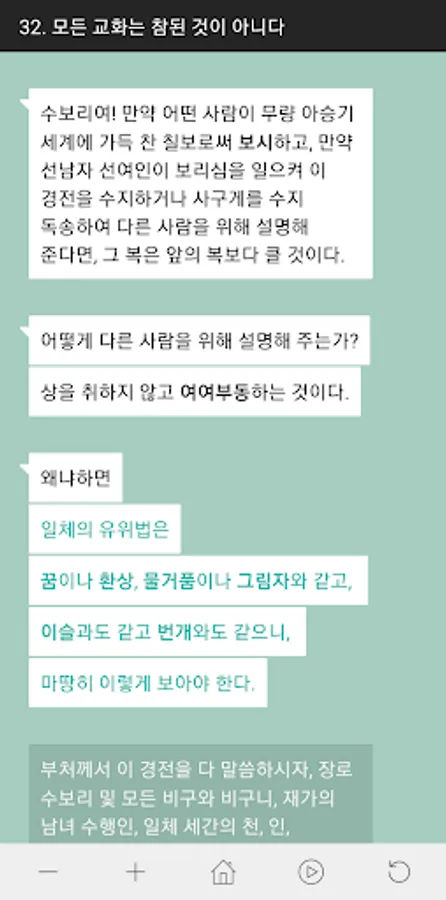 It is also called the Geumgang Banya Paramil Sutra and the Geum River Half Night Sutra. Set in the son-in-law of India as the background, this is a sutra preached for the disciple Subhuti. Do not cling to one place and do not give in to one's heart, and do not dwell on it. Do not look at the Buddha as a form but respect it as the truth. All appearances are formless. He said he would see the Tathagata. This sutra is the same as the Neungdan Geumgangbun (能斷金剛分) of Volume 577 of the 600 volumes of the Great Ban Night Sutra translated by Hyeonjang (玄奘). It is a scientific opinion. This fact can also be seen from the fact that many other translations have been published since the commentary was written early in India by Mu Chak and Se-chin, and a translation was published in China by Kumarajip 鳩摩羅什.