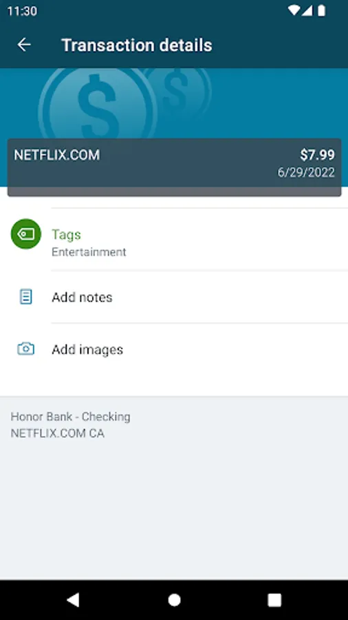 Keep your transactions organized by allowing you to add tags, notes and photos of receipts and checks.