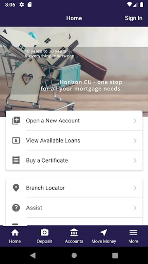 Our new mobile app provides members convenient access to Horizon Credit Union's mobile website, mobile check deposit, mobile banking, branch & contact information, and help.