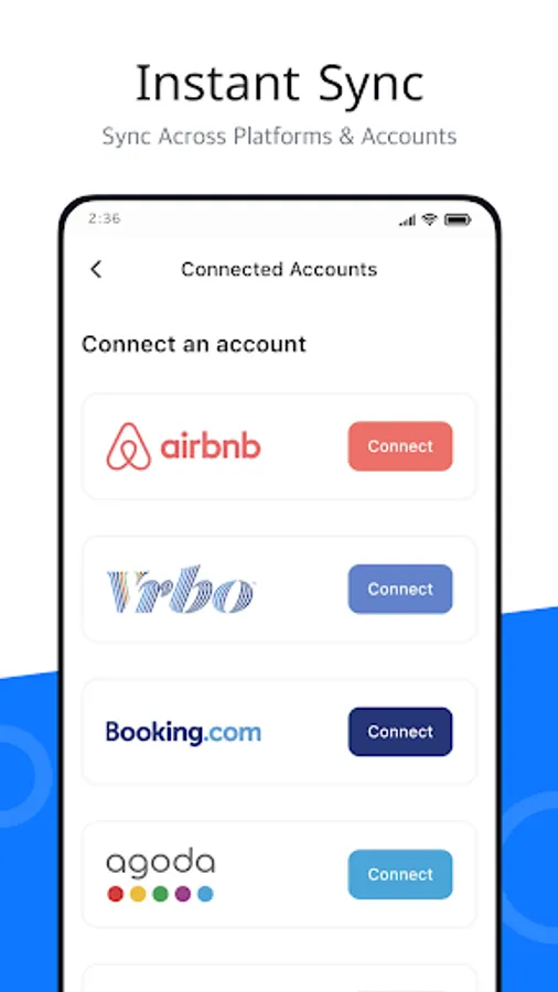Enjoy instant synchronization of calendars, prices, reservations, messages, and reviews across all platforms and accounts.