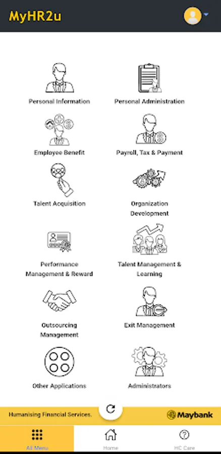 MyHR2u is a Front-end Access System & Tracking application that is intended to provide complete and easily accessible information for each Maybank Indonesia employee.