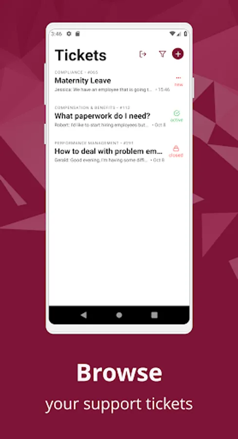 - As a subscriber with an HR or employment law question, login and tap the plus sign icon. Fill out the subject matter, subject line, CC others within the organization, if desired, and provide a synopsis of the issue