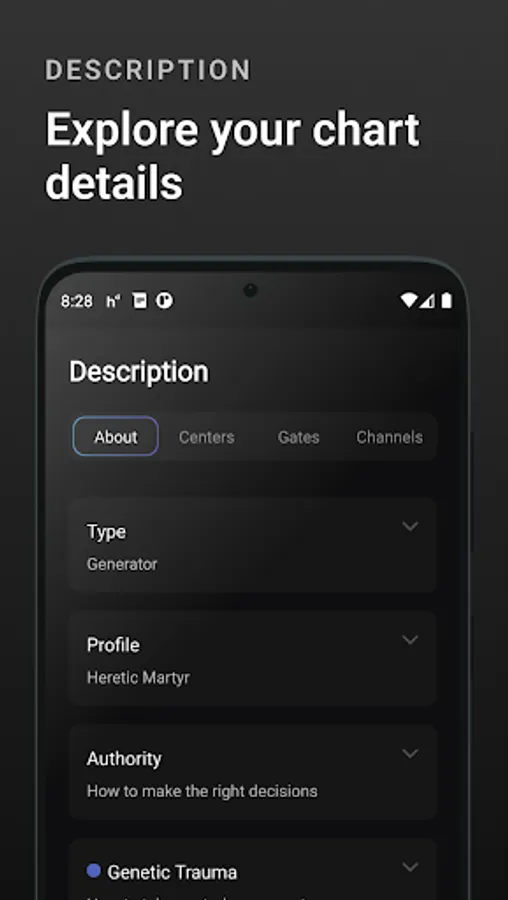Human Design has collected such knowledge as the Chinese I Ching, the Hindu chakra system, Kaballah, astrology, quantum physics and genetics. This my human design app helps living in sync with your true nature.
