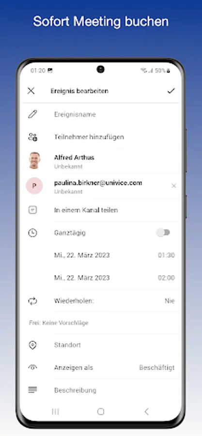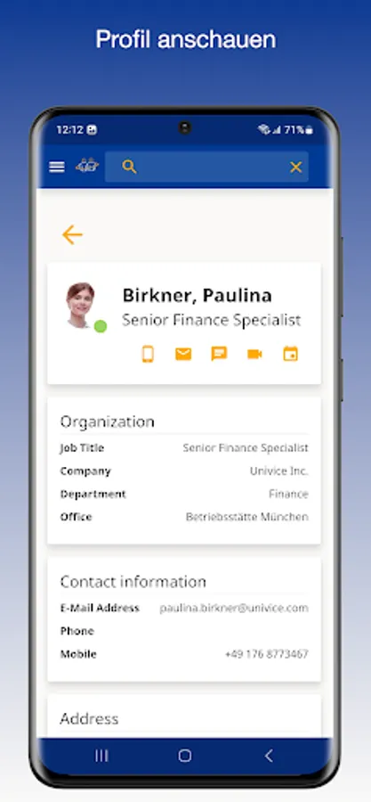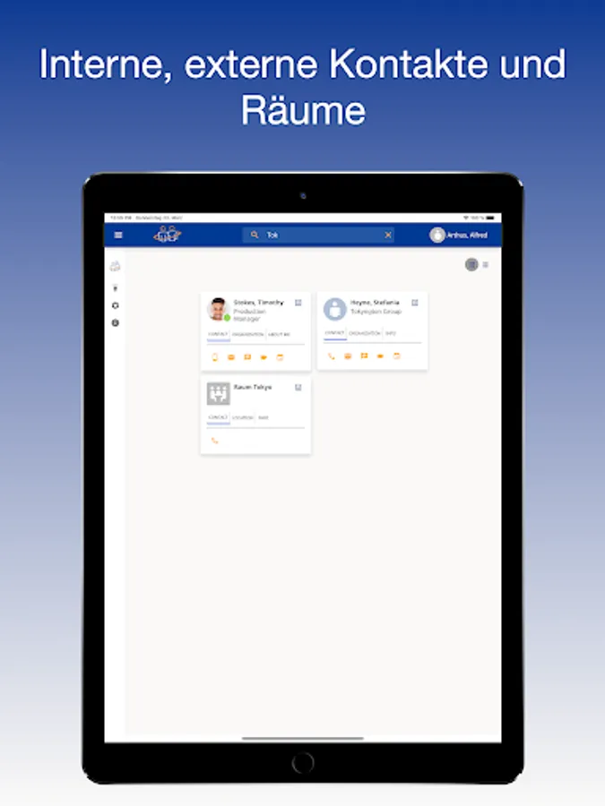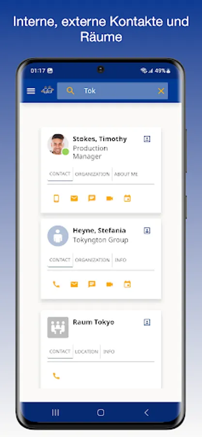 CUSTOMIZE: The display of contacts can be customized and differs depending on the object type (e.g. internal employee, external contact, room).