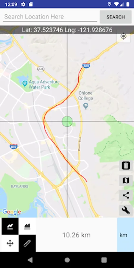 ◆ Switch between Move and Measure mode. So you can pick where you want to begin measurement or begin right away. You can keep moving the map and continue measure longer distance.