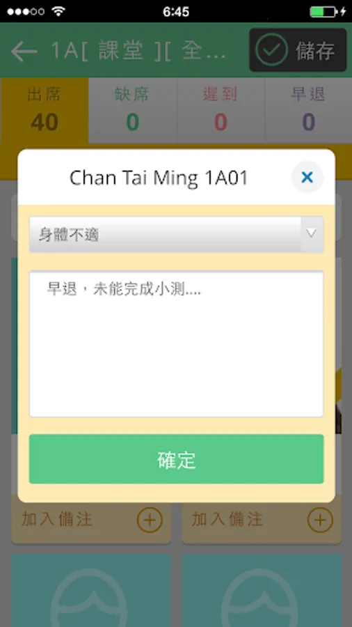 - Ad hoc rapid review school attendance status overview table, easy to trace the progress of each class named