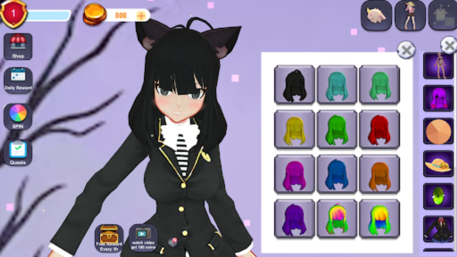 Decorate your cute anime using lots of clothes, items, hair colores and items!
