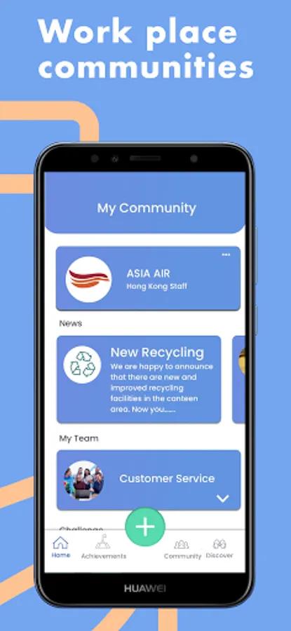 With the goal of bringing sustainability to the workplace, we have created a platform for corporations to create communities and combine employees' total Impact. See news within your workplace, team up with your department or work buddies, compete in challenges, and ultimately support workplace initiatives.