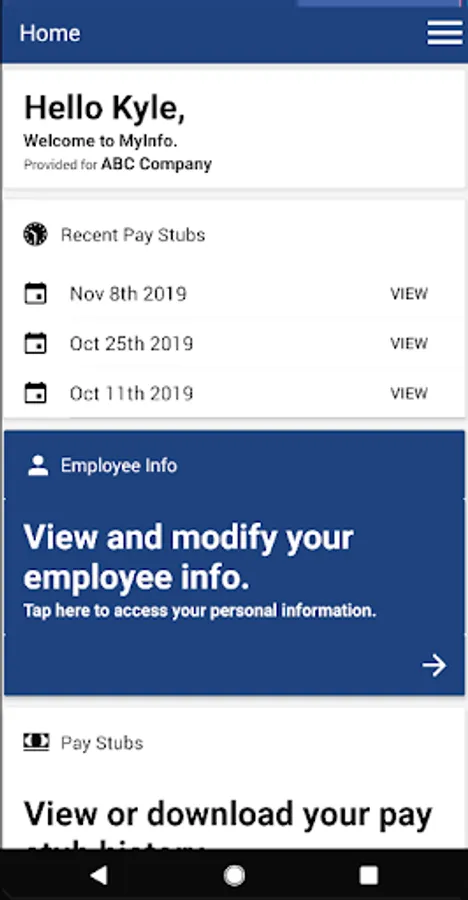 Myinfo mobile is an employee self-service application that enables employees to perform a number of key actions including modifying personal information and accessing paystub history.