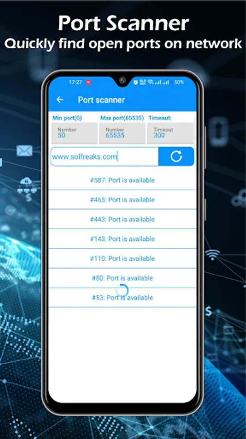 Port Scanner helps you to scan the ports of any host via IP or domain name. Port Scanner helps you to check which ports or open on a device by scanning ports using an android port scanner you can scan ports on the device. Port Scanner is a very fast port Scanner.