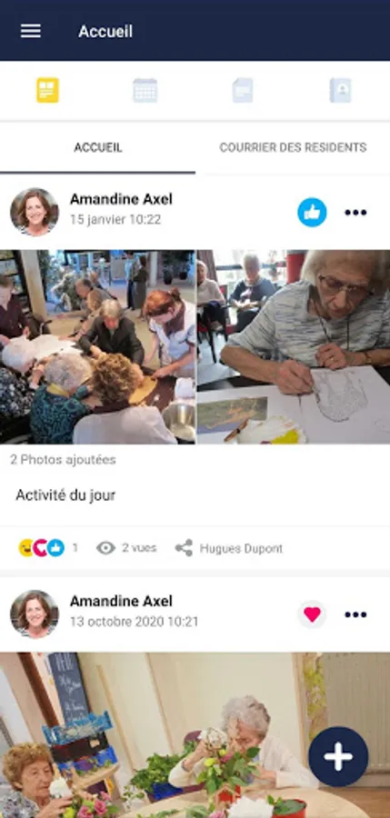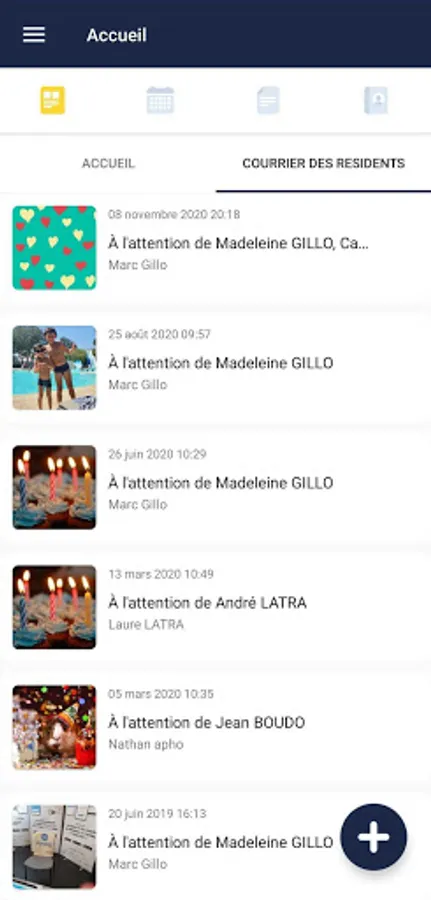 - Download the documents shared by the residence team: Newsletter, menu, CSV report, etc ...