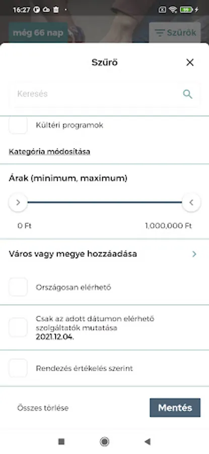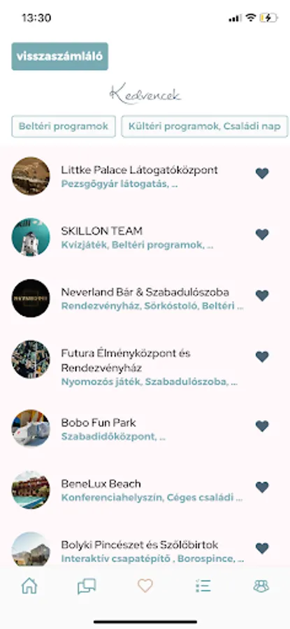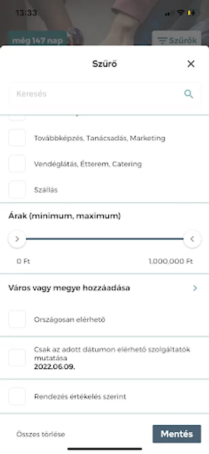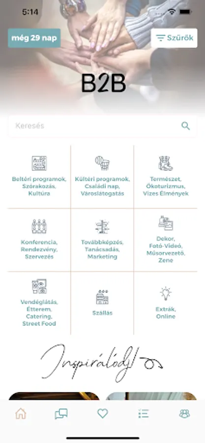 • FILTER - you can filter the elements of the corporate event in detail by keyword, county, city, free time, category, rating or price category