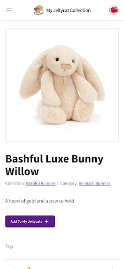 With the Jellycat Collector App, you can easily add new Jellycat toys to your collection, including their name, size, and any other relevant details. You can also upload photos of your toys and add notes about where you acquired them, how much you paid, and any special memories or stories associated with them.