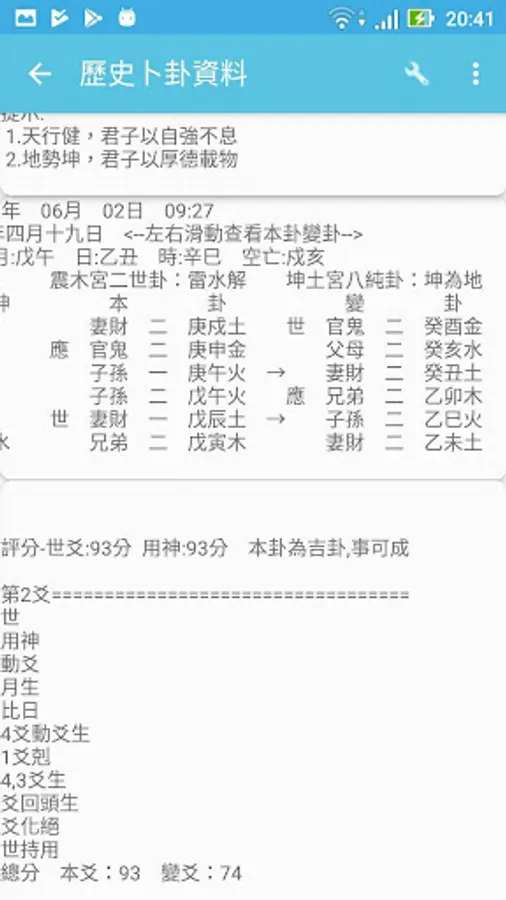 3.詳列日.月.動爻,對用神,世爻所作用的效果,以供使用者研讀判斷,是學習斷卦很好的輔助工具
